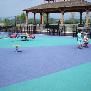 The three most common surfacing types in todays playgrounds are wood-fiber, poured in place rubber and rubber tile. The main differences between them are cost and longevity. We would be happy to help you decide what best meets your needs.